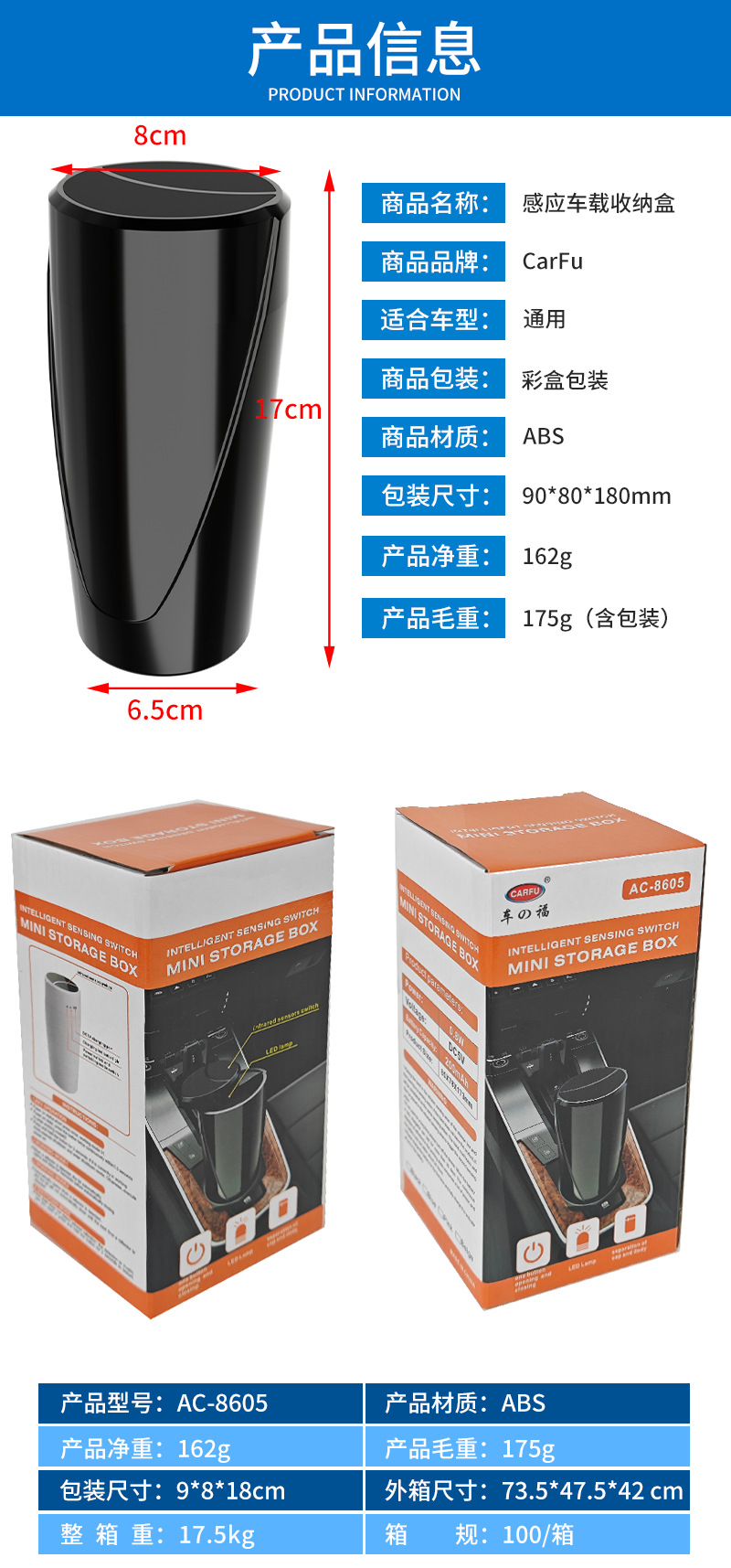 跨境新品智能感应车载垃圾桶家用车载烟灰缸收纳盒汽车垃圾桶批发